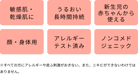 ※すべての方にアレルギーや皮ふ刺激がおきない、また、ニキビができないわけではありません。 *温泉水(整肌成分)